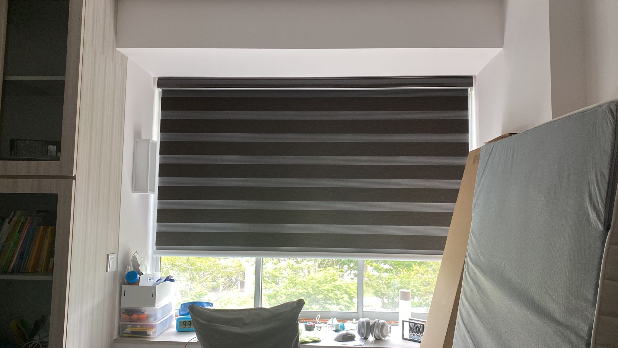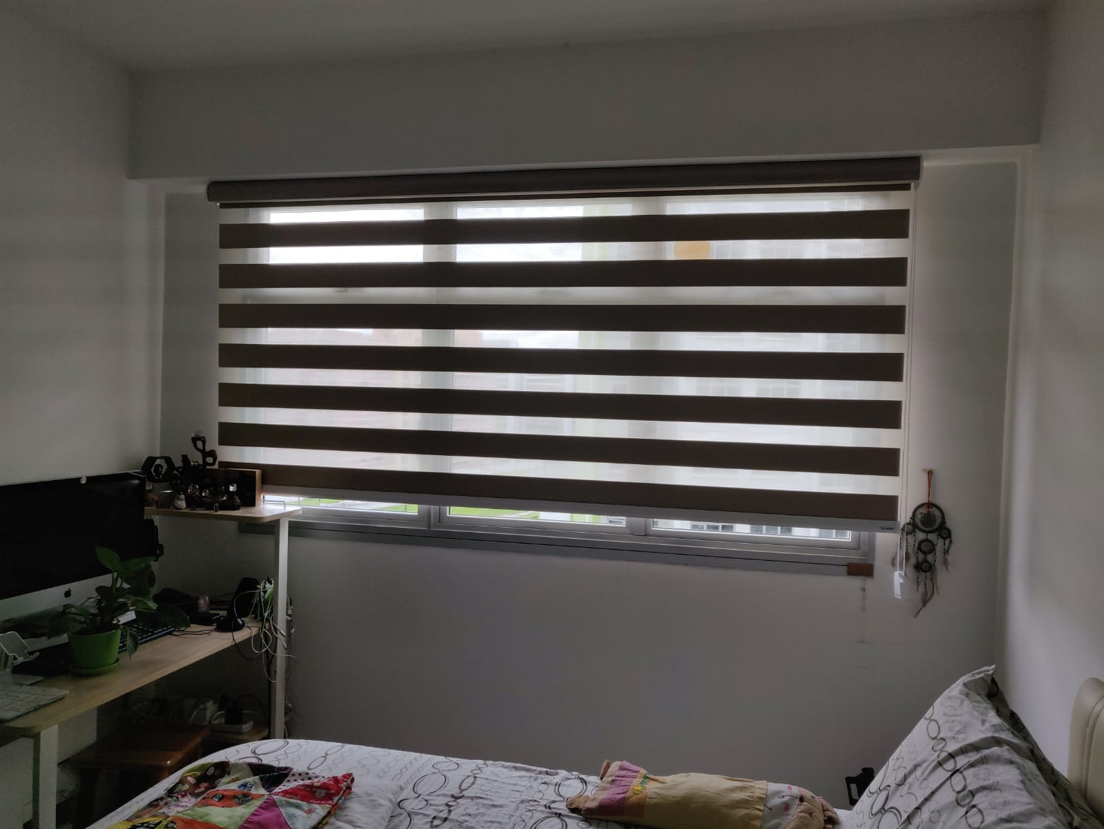 Korean Blinds overlapping filter will allow you to control between day nor light filtering by a single pull of the pulley system.